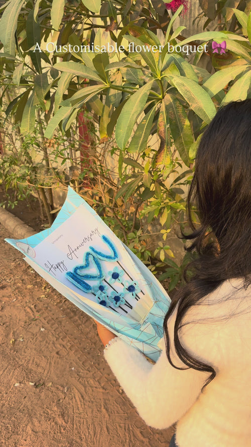 Customizable Happy Anniversary I Love You Crochet Bouquet | Personalized Pipe Cleaner Flower Gift